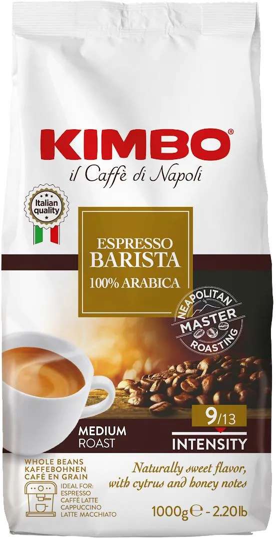 Entdecken Sie Kimbo Espresso Barista, eine exklusive Kaffeemischung, die aus 100% Arabica-Bohnen sorgfältig aus den begehrtesten Anbaugebieten Mittel- und Südamerikas sowie Afrikas ausgewählt wurde. Diese meisterhaft komponierte Mischung vereint die Vielfalt und Qualität, die Kaffee-Liebhaber schätzen. In einer mittleren Röstung entfaltet sich der natürliche süsse Geschmack, der jeden Gaumen auf eine unvergleichliche Reise entführt.