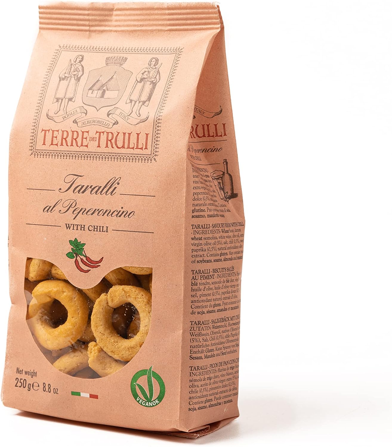 Bestelle jetzt unsere handgemachten Taralli Pugliesi mit Chili online und genieße den echten Geschmack Apuliens.